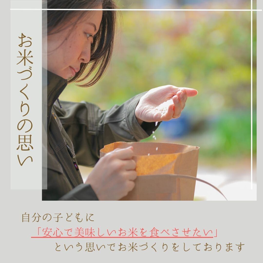 「子どもたちに安心でおいしい米を食べさせたい」という思いを込めて、お米づくりに取り組んでいます。